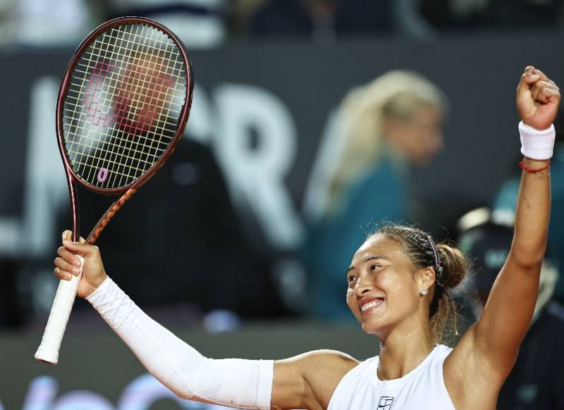 当日,在意大利罗马举行的WTA1000网球罗马站女单四分之一决赛中,中国选手郑钦文2比0战胜白俄罗斯选手萨巴伦卡,晋级半决赛。 新华社记者 李京 摄
